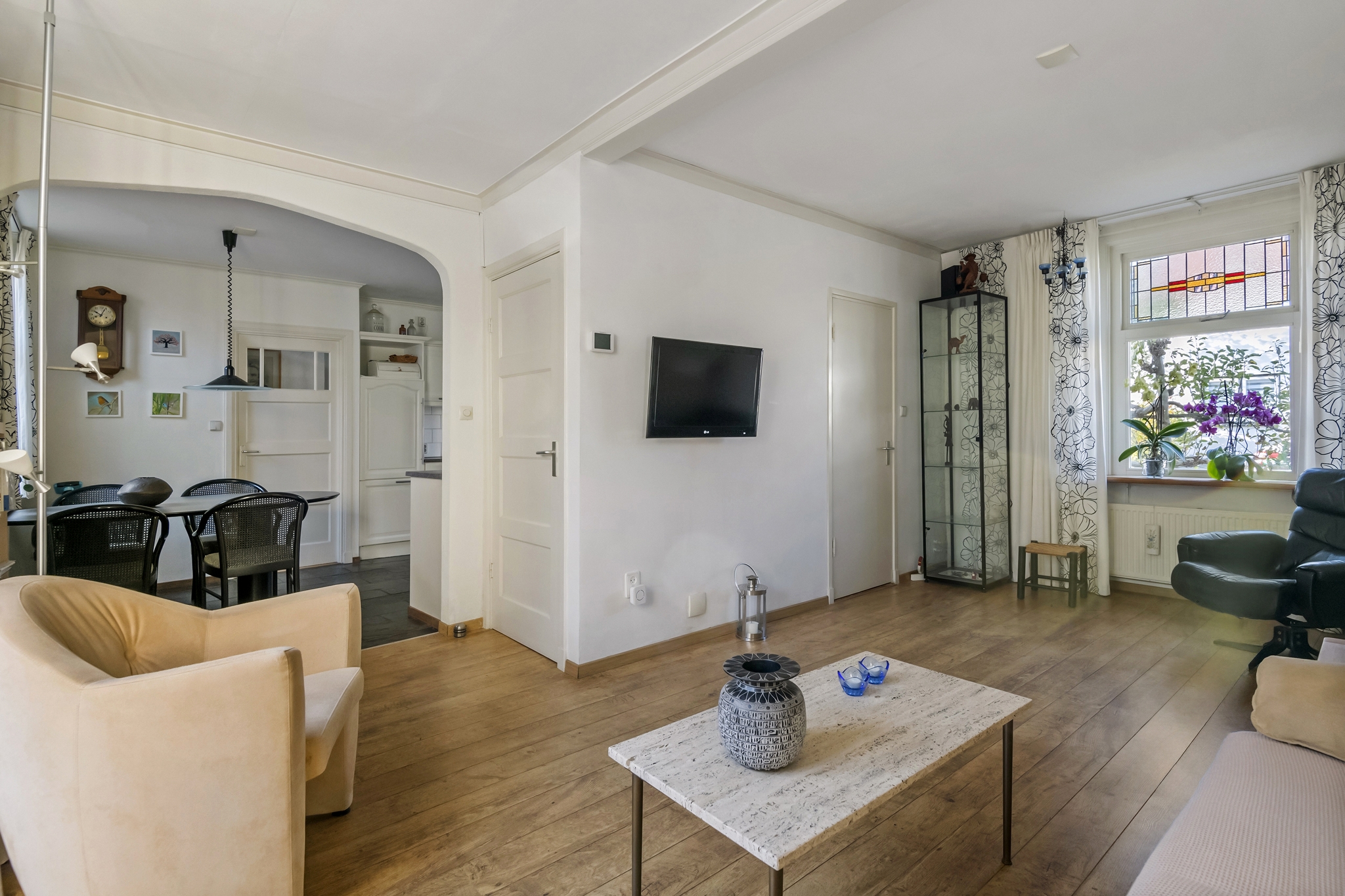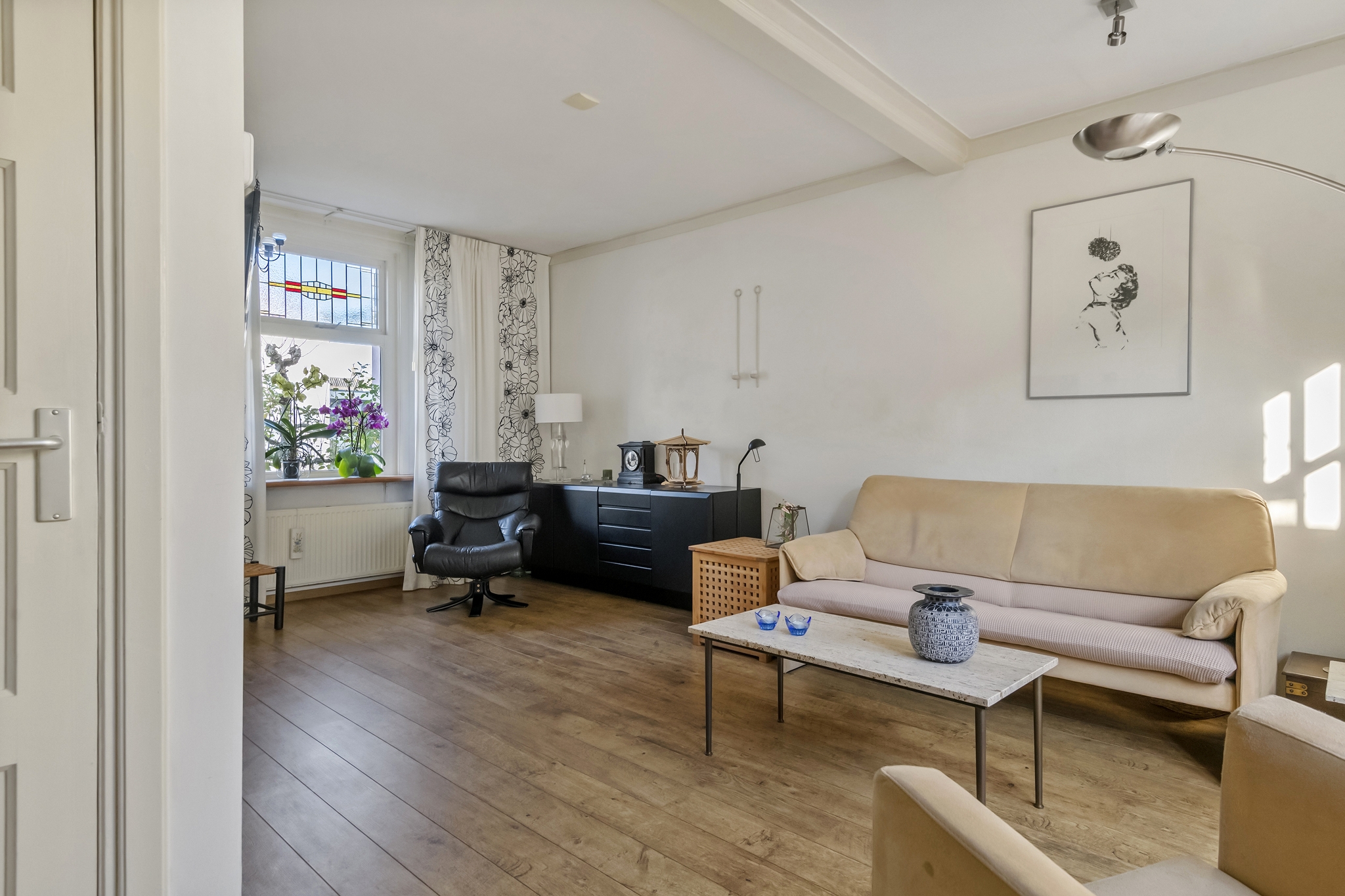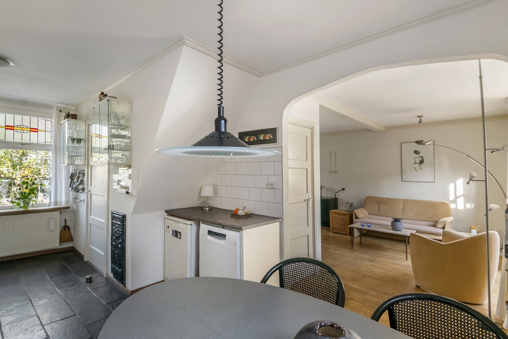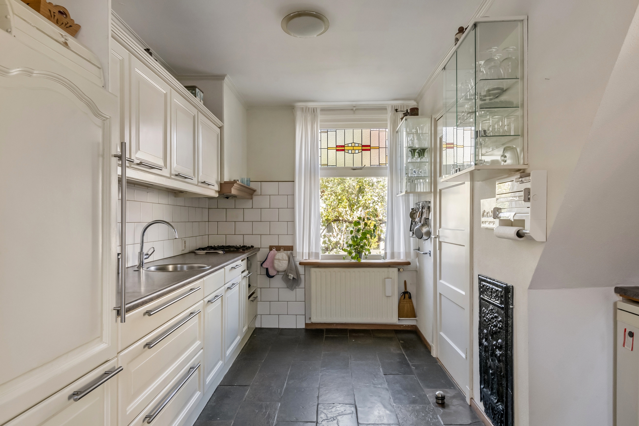 In dit verrassende huis kan jij een superstart maken op de woningmarkt! Deze geschakelde woning met tuin is op loopafstand van het stadscentrum gelegen. Graag laten wij u kennis maken via een bezichtiging met deze ruime (104 vierkante meter) woning die daarnaast ook nog eens een zeer verrassende indeling heeft. De oorsprong ligt in het begin van de vorige eeuw waarin het eerst twee afzonderlijke woningen waren. Hoe leuk is het om te zien dat originele vooroorlogse stijl kenmerken zoals glas-in-lood ramen en paneeldeuren worden gecombineerd met een compleet afwerkingsniveau, een ruime en lichte living, woonkeuken en twee fraaie slaapkamers. De woning is op steenworp afstand gelegen van alle voorzieningen zoals winkels, basisschool, horeca, theater en NS-station. INDELING: Begane grond: Entree, hal met meterkast, trapopgang naar eerste verdieping en toiletruimte. Bij het betreden van de woonkamer valt meteen het licht op. De kamer is ruim van opzet met diverse indelingsmogelijkheden. Via de openslaande deuren betreedt u de tuin. De woonkamer loopt over in de woonkeuken. Hier treft u een rechte keukenopstelling aan met apparatuur. De woonkeuken is tevens via een deur rechtstreeks te betreden vanuit de hal. De bijkeuken geeft toegang tot een tussenhal die overloopt in een fraaie berging. Eerste verdieping: De overloop geeft toegang tot twee uitstekend bemeten slaapkamers. De hoofdslaapkamer is ruim van opzet en biedt naast een dakkapel twee vaste kasten. Ook treft u de badkamer op de eerste verdieping direct gesitueerd naast de hoofdslaapkamer. De ruimte is voorzien van een douchecabine en wastafel. Tweede verdieping: Via vlizotrap bereikbare bergzolder Bijzonderheden: - Perfecte starterswoning op een centrumlocatie; - Compleet afwerkingsniveau middels keuken en badkamer; - Uitstekend onderhouden; - Ruime lichte living; - Woonkeuken - Woonoppervlakte 104 vierkante meter. - Gelegen op loopafstand van alle voorzieningen; - Centraal maar toch rustig; - Heerlijke tuin - Oplevering in overleg.